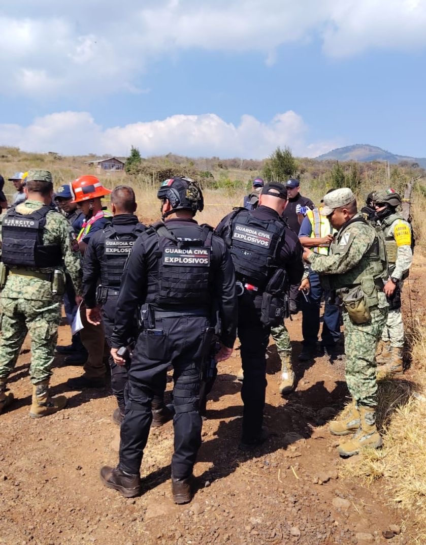 En coordinación con la Secretaría de la Defensa Nacional, la Fiscalía General del Estado y autoridades municipales, el agrupamiento Especializado en Artefactos Explosivos y Materiales Peligrosos de la Guardia Civil realizó la inspección del lugar, acordonó el área y aseguró el material para evitar nuevos incidentes.