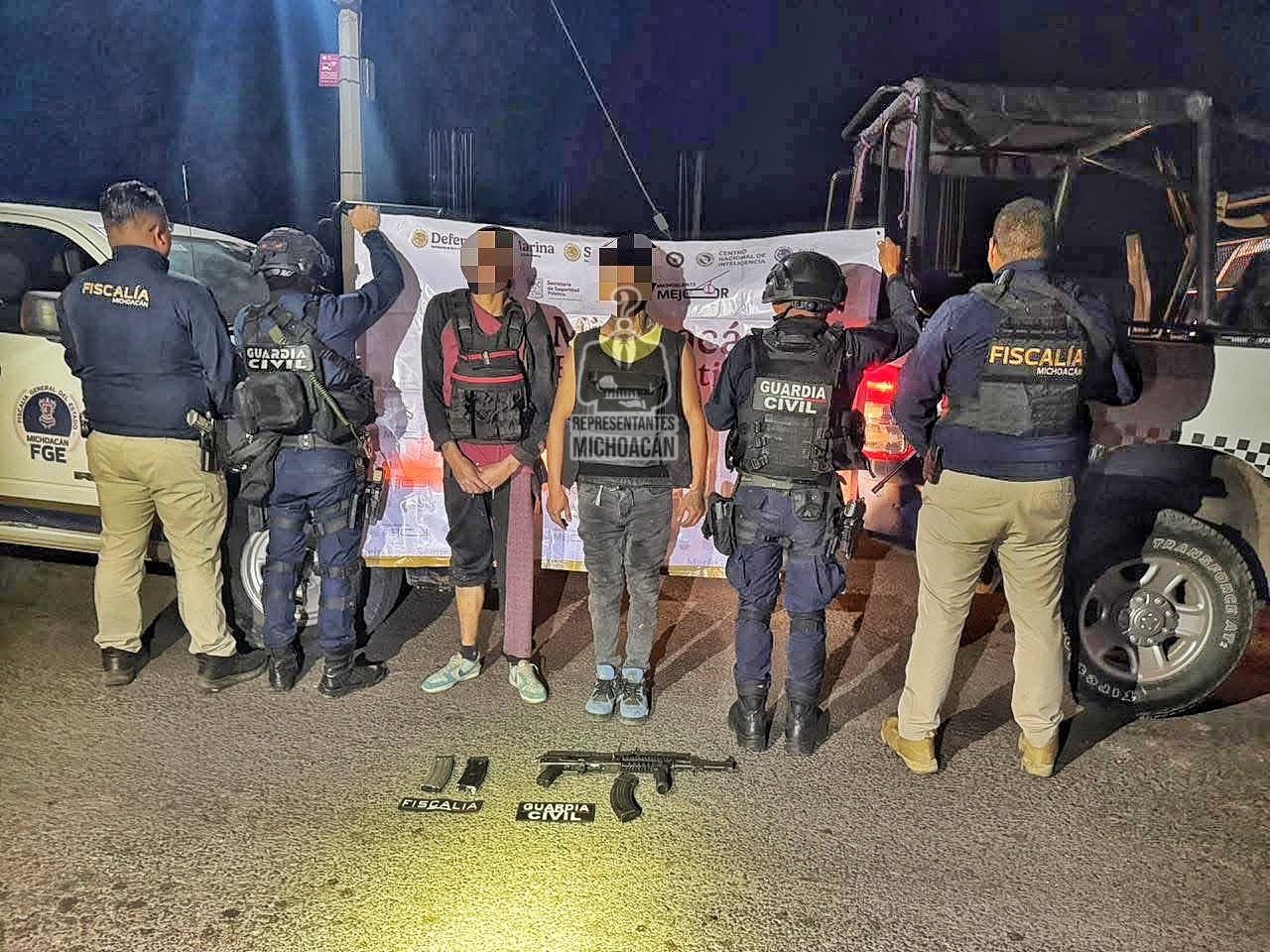 De acuerdo con reportes oficiales, elementos de la Secretaría de Seguridad Pública (SSP) y la Fiscalía General del Estado (FGE) desplegaron un operativo tras las detonaciones reportadas por vecinos. En el sitio localizaron a dos sujetos heridos por impactos de bala, a quienes les aseguraron chalecos balísticos, cargadores y un arma larga calibre 7.62 milímetros. Ambos fueron trasladados bajo custodia, revelándose posteriormente que uno de ellos contaba con una orden de aprehensión vigente por homicidio, lo que encendió aún más las alarmas sobre el trasfondo del enfrentamiento.
