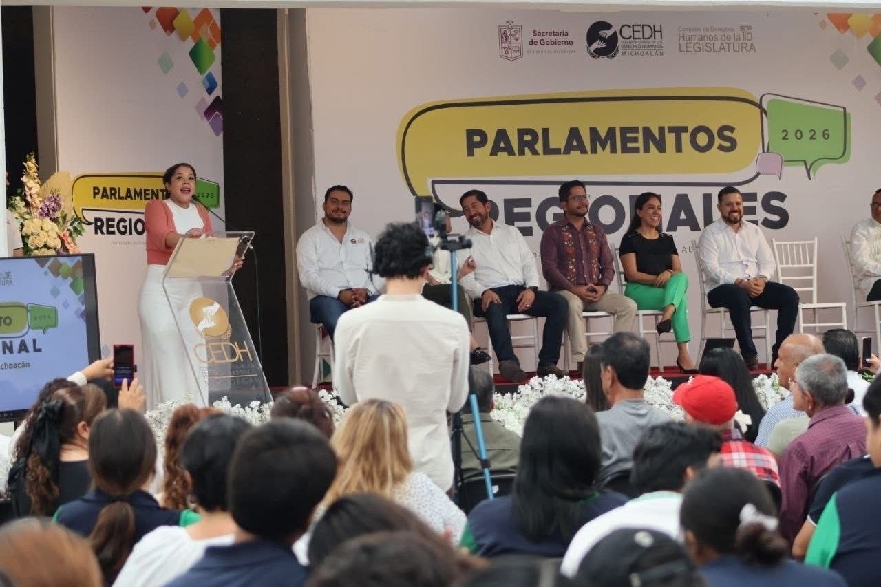 Apatzingán, Michoacán, 23 de abril de 2026.- Con la participación de estudiantes, docentes, organizaciones y ciudadanía en general, se llevó a cabo el IV Parlamento Regional de Derechos Humanos, encabezado por la diputada Xóchitl Gabriela Ruiz González, presidenta de la Comisión de Derechos Humanos de la LXXVI Legislatura.